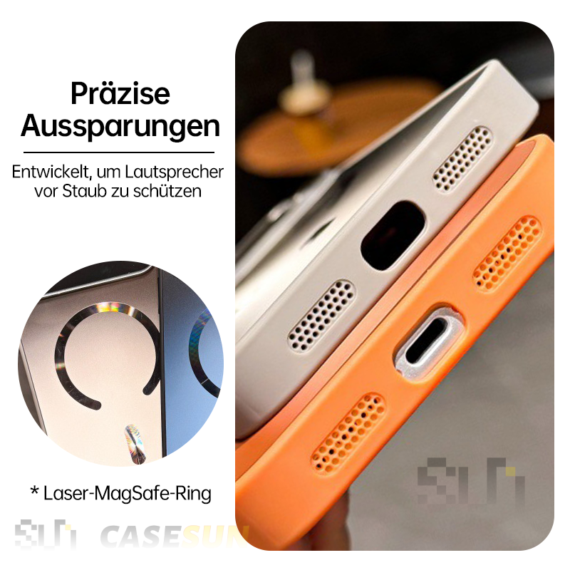 Integrierter starker Magnetring für sicheres kabelloses Laden und Zubehör.